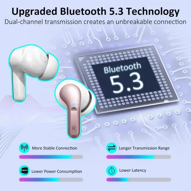 Enhanced Bluetooth 5.3 and Long Distance Connection: The advanced Bluetooth 5.3 technology provides a faster, more stable connection for the wireless earbuds, syncing audio and video without latency. The range is up to 15 meters away. Enjoy uninterrupted listening and controlling. Once the wireless earbuds are connected for the first time, simply open the charging case and they will automatically connect to your phone.