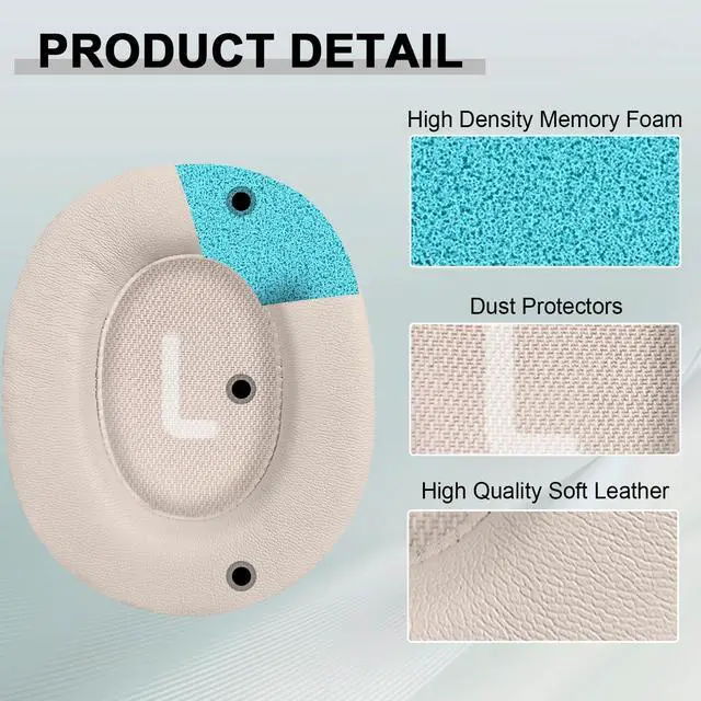 Replacement ear cushions made with high quality memory foam and protein leather, not pressing on the ears. Soft & Durable.
