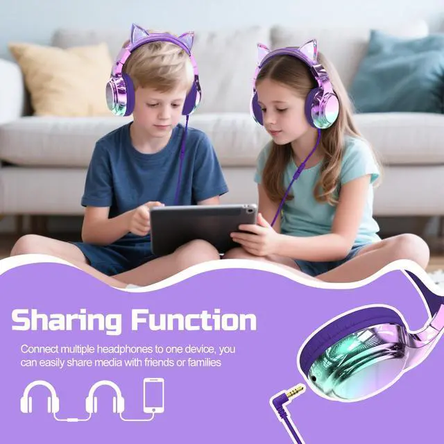 SAFE EARS, CLEAR CHAT & SHAREPORT FUN Give yourself peace of mind. These headphones feature a parent-approved, switchable 85dB/94dB volume limiter to protect delicate ears. The high-definition built-in microphone ensures your child is heard clearly during online classes and family calls. Best of all, the unique built-in 3.5mm Share Port lets two kids listen to one device at the same timeno splitter needed. Double the fun, zero hassle!