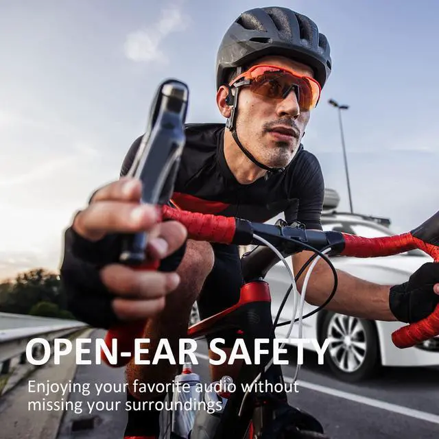 Open-ear headphones: The open-ear bone conduction headphones feature an earbud-free design, allowing you to stay aware of your surroundings while enjoying your audio. Ideal for cycling, running, driving, and hiking.