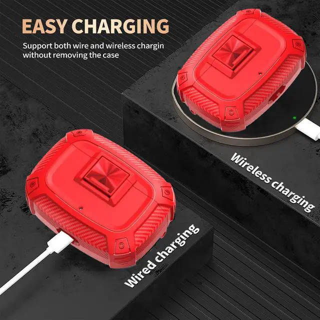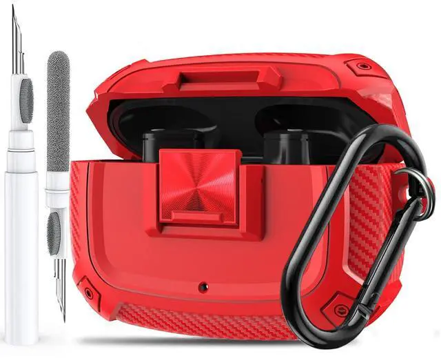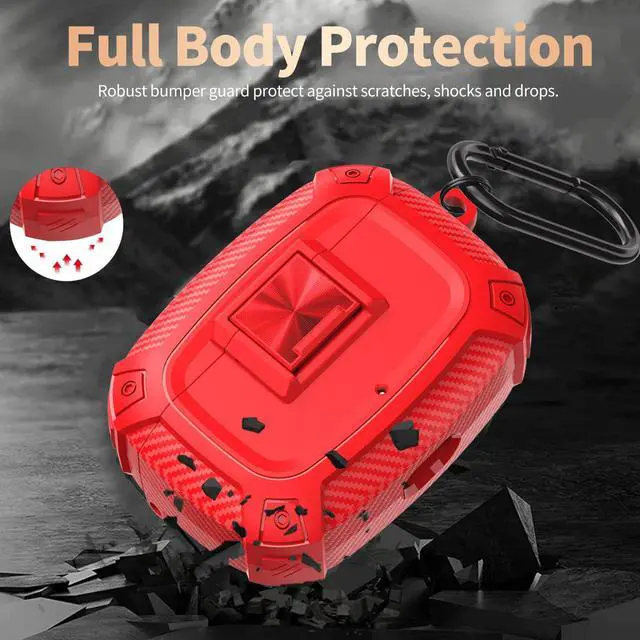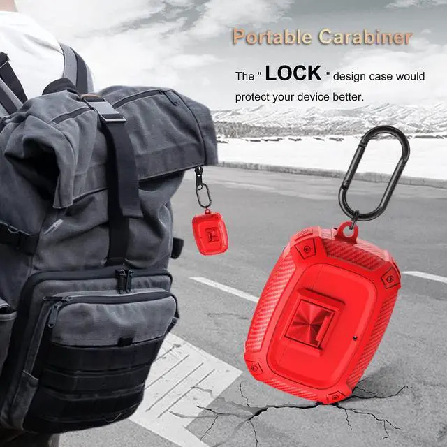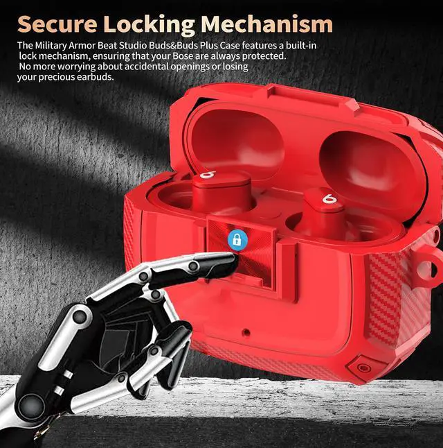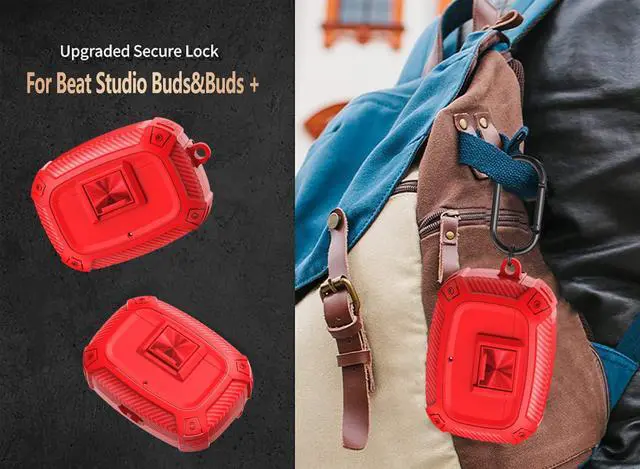 for Studio Buds/Bud + Case Cover with Lock Clip 2021/2023, Rugged Shockproof Protective Hard Skin with Carabiner&Cleaner Pen Men Women for Studio Buds/Bud Plus Earbuds - Red