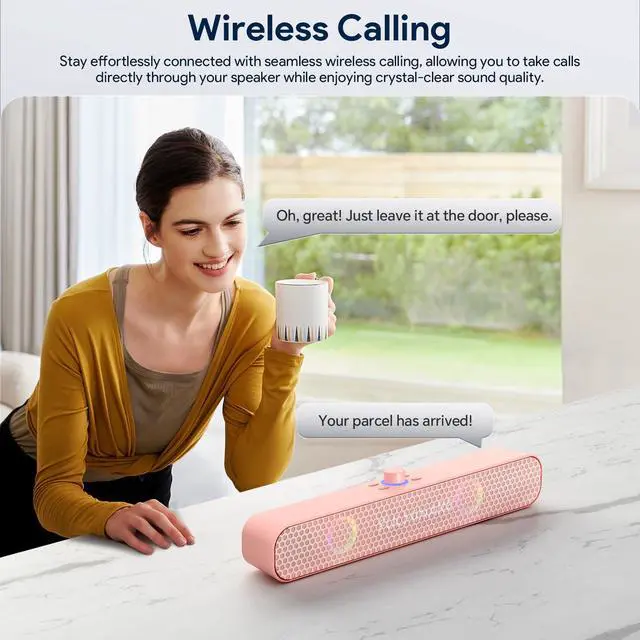 Wireless Calling with Clear Sound: With Bluetooth-compatible wireless speakers, you can take calls directly on the speaker without needing to pick up your phone. The built-in microphone delivers clear, hands-free communication, allowing you to stay connected seamlessly. Whether at home or on the go, this wireless calling feature offers unmatched convenience and