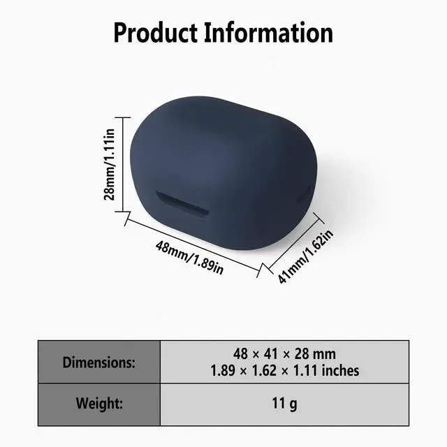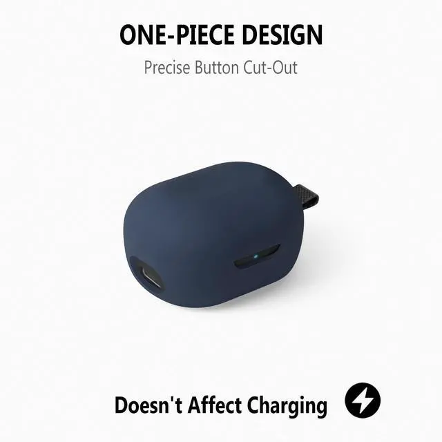 Silicone Case for True Wireless Earbuds, Soft Flexible Scratch Resistant Cover with Carabiner (Navy Blue)