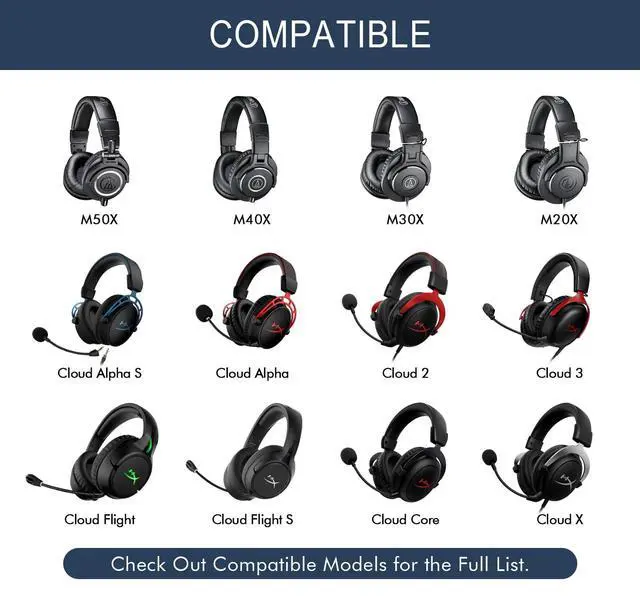 Compatible With: Designed for seamless compatibility, our premium ear pads perfectly fit top headphone models including M50X, M40X, M30X, Cloud 1/2/3/Core/Alpha, Arctis 7, Arctis 7P, Arctis 9, Arctis 9x, Arctis Pro, Arctis Prime wireless, MDR-7506, MDR V6, Stealth 500, Stealth 600, Stealth 700 and more. See product details for full compatibility list.