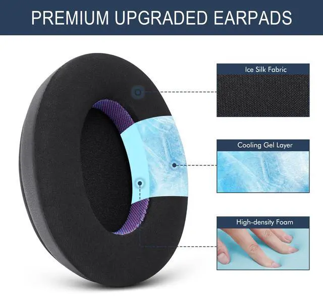 Cooler for Longer: Upgrade your headphones with our cooling gel ear pads. Our innovative dual-layer cooling gel design (inner cooling layer + top comfort layer) wrapped in premium sports fabric/PU leather keeps your ears cool and comfortable for hours. Just pure, breathable comfort for gamers and music lovers alike!