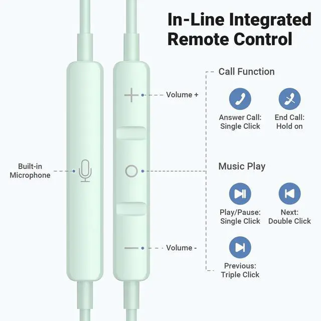 In-Line Control Type-C Headphones: Control buttons on the headphones provide easy access to play/pause, skip tracks, and adjust volume without needing to reach for your phone. The built-in microphone allows for convenient hands-free calling.