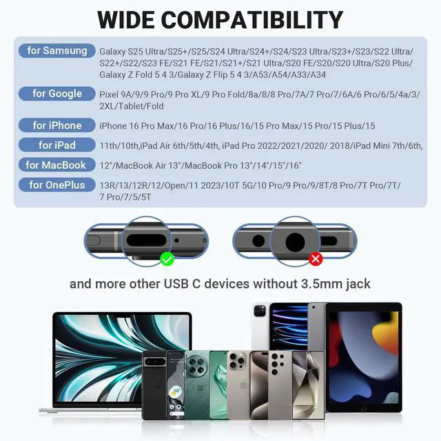 Wide Compatibility: USB C earphones are compatible with a wide range of devices including Samsung Galaxy models, Google Pixel, OnePlus, MacBook, iPads, and most USB-C devices without a 3.5mm jack.