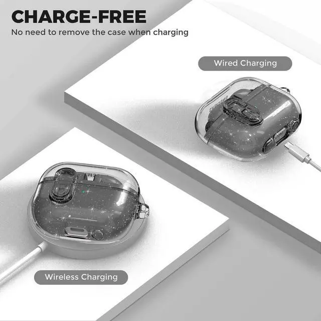 CRYSTAL CLEAR: Transparent polycarbonate back allows charging light to shine through while keeping your buds safe from scratches or scuffs. Also can look your Galaxy Buds 3 Pro / Buds 3 / Buds 3 FE inside very nice.