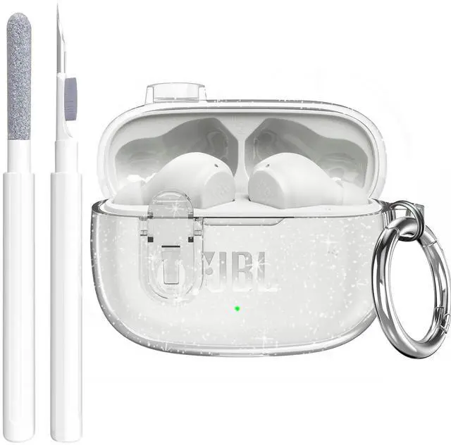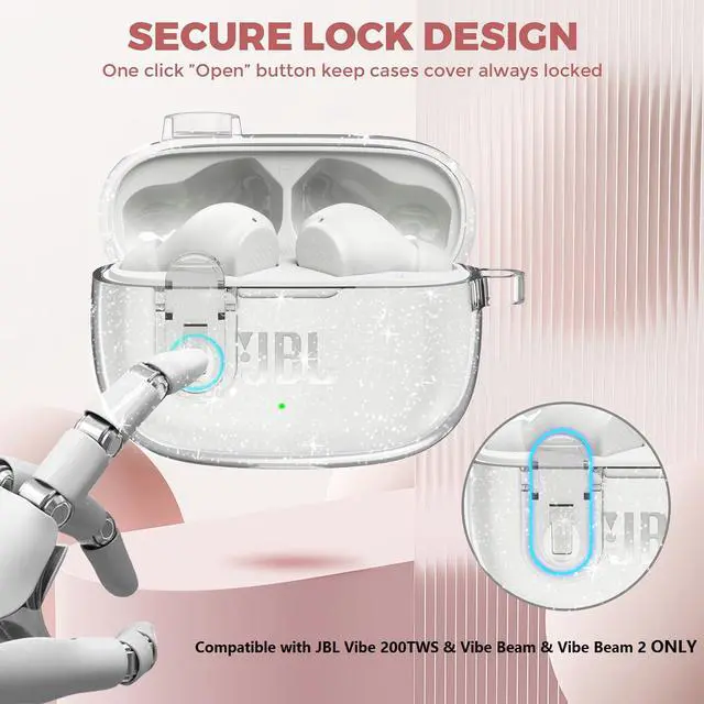 Compatible with Vibe 200TWS/Beam/Beam 2 Case Cover Clear Lock Clip with Cleaner Kit, Transparent TPU Protective Cover Men Women with Carabiner for Vibe Beam 2 Charging Case
