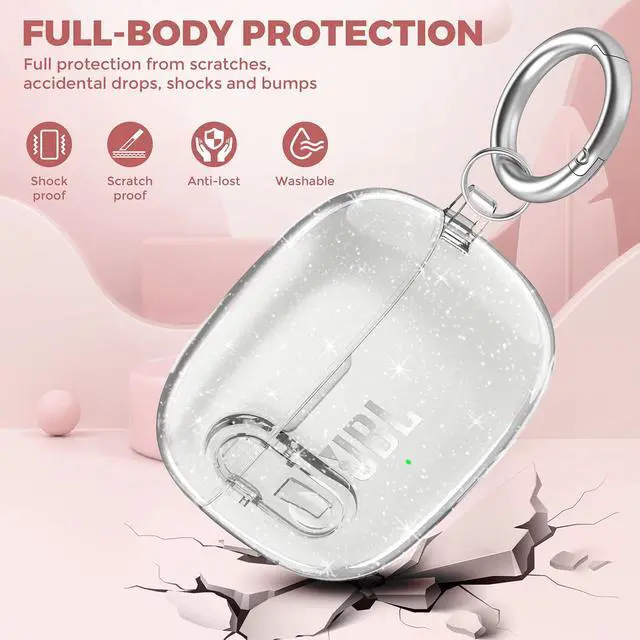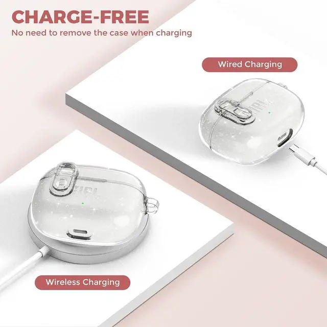 CRYSTAL CLEAR: Transparent polycarbonate back allows charging light to shine through while keeping your buds safe from scratches or scuffs.