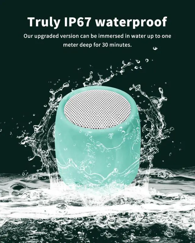 [ IP67 WATERPROOF and DURABLE DESIGN ] With an IP67 waterproof rating and a waterproof charging port design, this waterproof speaker is built to withstand rain, snow, dust, and spills, and can even be submerged in water for extended periods. The ABS plastic shell is anti-dust and anti-fingerprint. Its the ultimate companion for the beach, pool, shower, boating, kayaking, barbecues, camping, and more, ensuring you can enjoy music anytime, anywhere.