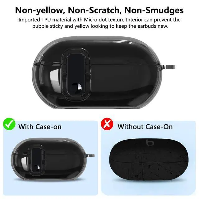 No-Yellow & Lightweight: The 2024 Solo case is made of eco-friendly anti-yellow premium TPU that ensures long-lasting clarity. Its pure transparent appearance highlights the original beauty of your case, while the special interior micro dot pattern prevents a sticky wet look, keeping your buds pure and neat.
