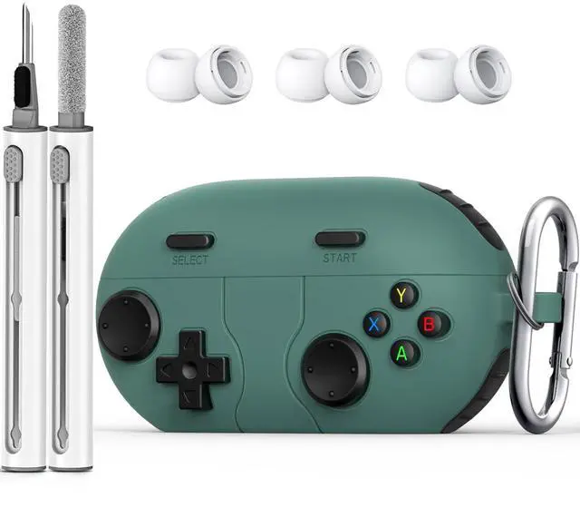 Cases for Buds 2024 Case Cover, Retro Funny Shock-Proof Protective Silicone Compatible with Wireless Earbuds with Cleaning Kit and Keychain Accessories-Green