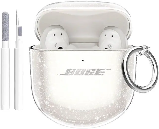 for QuietComfort Earbuds II 2022/QuietComfort Ultra 2023 Case Clear Glitter, Shockproof Soft TPU Cover for QC 2& QC Ultra Earbuds Case with Carabiner and Cleaning Pen-Glitter