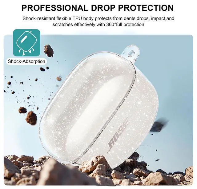 Latest Version: This case TPU cover perfectly fits for QuietComfort Earbuds II 2022 / QuietComfort Ultra 2023 case. The hingeless two-parts design provides easy access to the installation and pairing button of the transparent TPU protective case. The front LED indicator remains visible during wired and wireless charging. Note: Earbuds and charging case are not included.