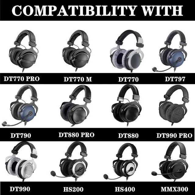 Compatible with various models of headsets, including DT770S, DT770M, DT770Pro, DT 790, DT797, DT880, DT990, HS200, and HS400.