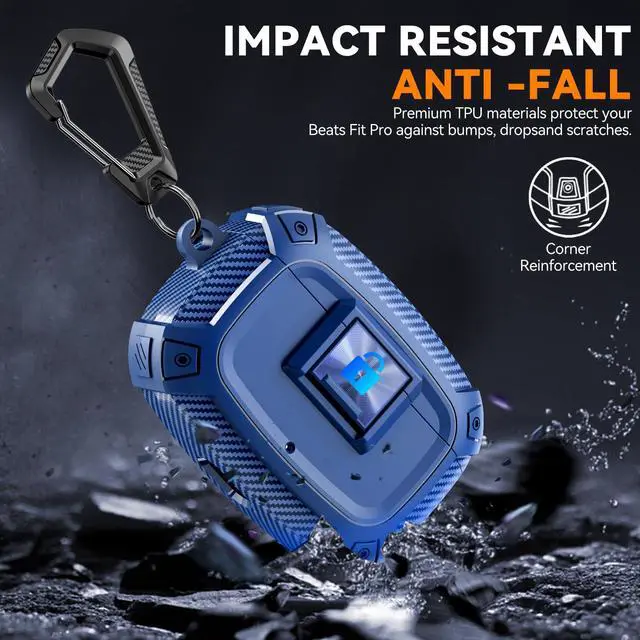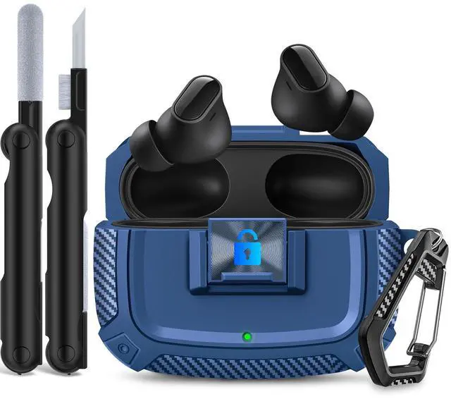 Lock Case for Studio Buds/Buds Plus Locking Case Cover with Lock Clip & Cleaner Kit Pen, Impact and Smudge Resistant Case Cover with Men Women (Deep Blue)