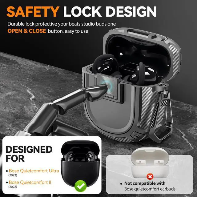 Military-Grade Protection: Hard protective cover designed for QuietComfort Earbuds II (2022) and QuietComfort Ultra (2023). Dual-piece design provides reliable protection and convenient opening.