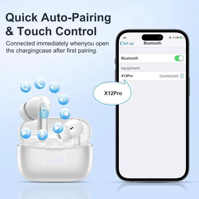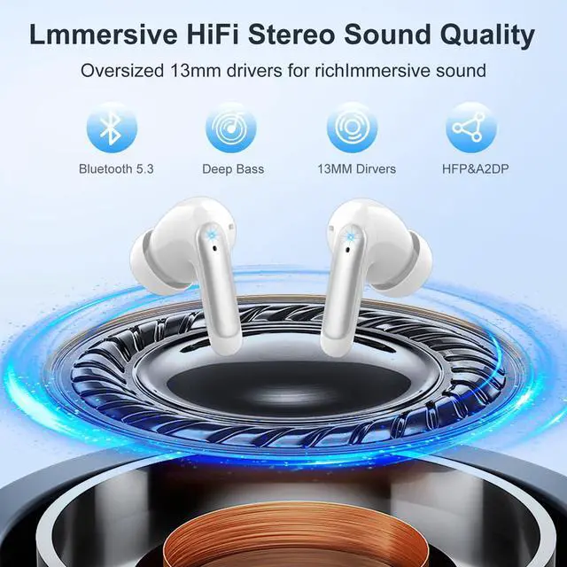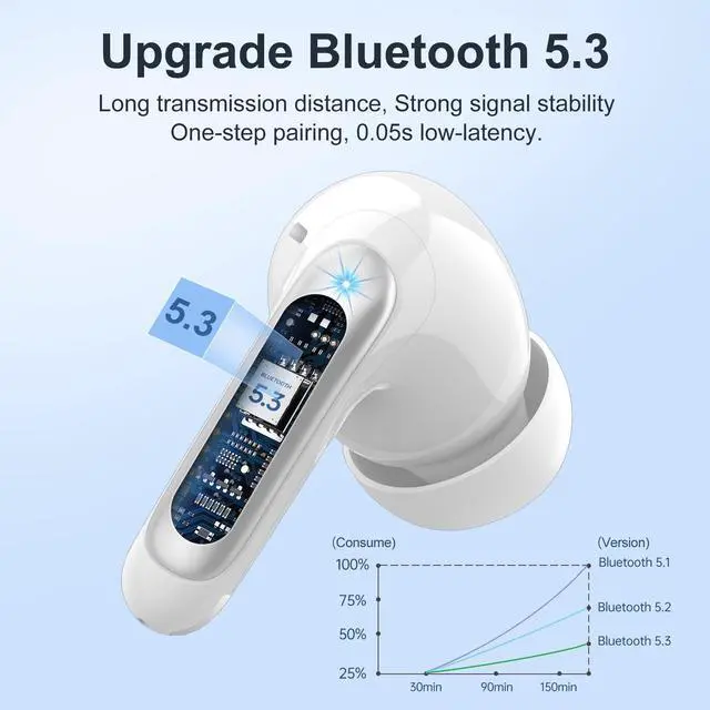 Advanced Bluetooth 5.3 Technology: Our wireless earbuds use the latest Bluetooth 5.3 chip, offering faster transmission and a more stable connection, effectively reducing latency and disconnection problems, ensuring a smooth audio experience during calls, sports, or games. With one-step pairing, the earbuds automatically connect to the last paired device after opening the charging case.