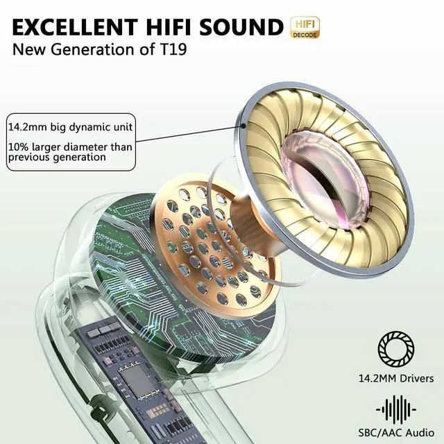 14.2mm Big Dynamic Speaker and 4 ENC Mics: The Bluetooth earbuds built-in 14.2mm dynamic speakers produce a wider frequency range and more detailed sound compared to smaller speakers. Besides, the wireless earphones are equipped with ENC noise reduction double mics to passively cancel 80% of background noise, allowing you and the caller to hear each other better and make crystal-clear calls with minimal background noise.