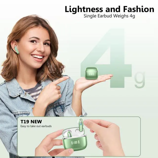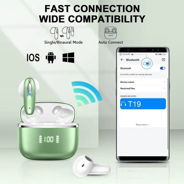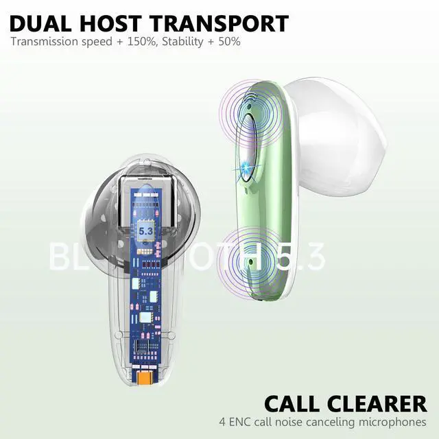 Leading Bluetooth 5.3 Technology and Effortless Pairing: These wireless earbuds adopt the advanced Bluetooth 5.3 technology, providing you with 2X faster transfer speeds (80% higher than the previous generation) and a more stable connection, with almost no delay. Taken from the charging case, wireless headphones will be paired with each other automatically, and just hit on Bluetooth list to connect, avoiding complex operations and saving waiting time.