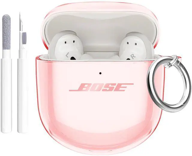 for QuietComfort Earbuds II 2022/QuietComfort Ultra 2023 Case Clear, Full Protective Soft Transparent TPU Cover for QC 2 Earbuds with Carabiner and Cleaning Pen - Pink