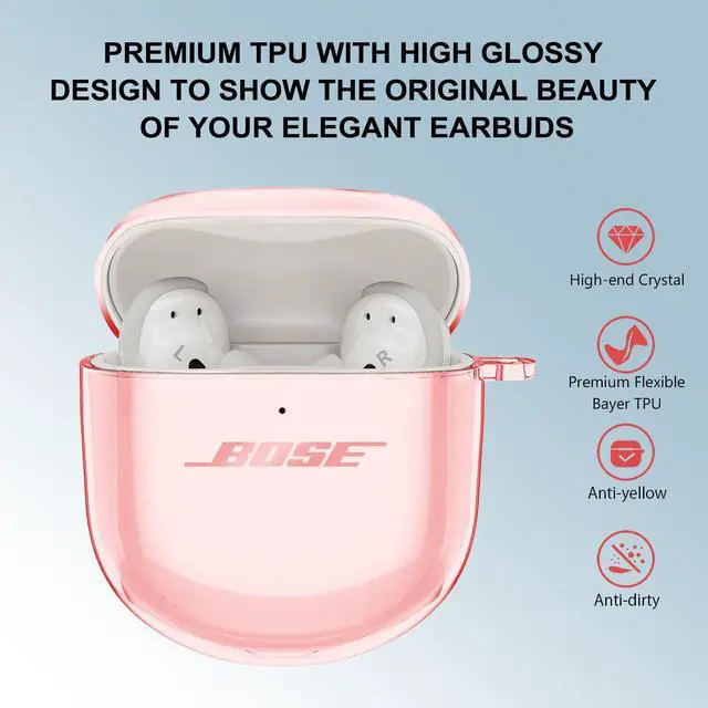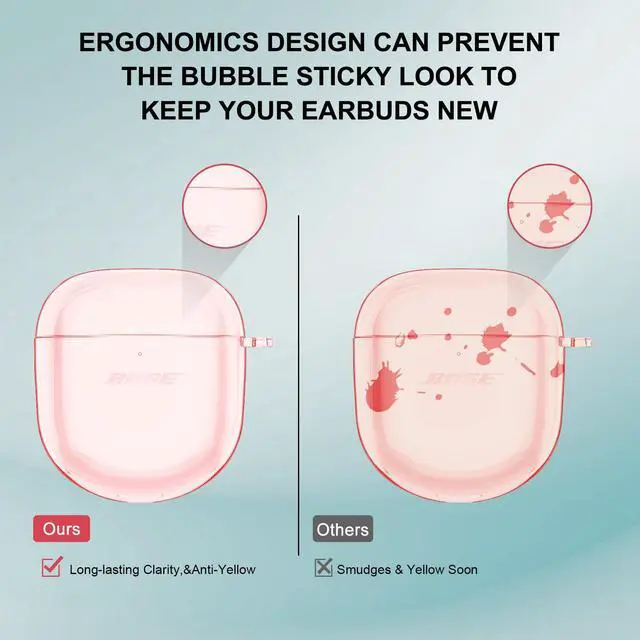 Long-Lasting Crystal & Lightweight: The case is made of eco-friendly anti-yellow premium TPU to maintain long-lasting clarity. Its pure transparent appearance showcases the original beauty of your QuietComfort Earbuds II case. The special interior micro dot pattern prevents a sticky wet look, keeping your QC Ultra case clean and neat.