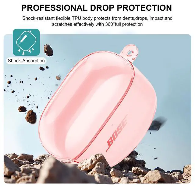 Latest Version: This clear TPU cover perfectly fits for QuietComfort Earbuds II 2022 / QuietComfort Ultra 2023 case. The hingeless two-part design allows easy access to installation and the pairing button of the transparent TPU protective case for your QuietComfort Earbuds II/QC Ultra. The front LED indicator remains visible while wire and wireless charging. Note: Earbuds and charging case are not included.
