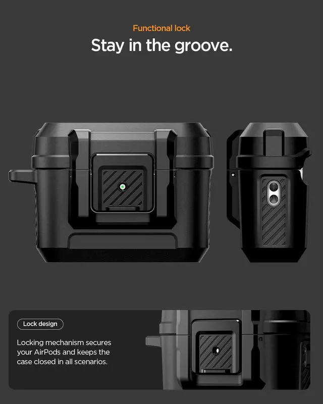 • Secure Locking Feature: Lock Clip prevents AirPods from falling out at all times, reinforced with multi-layered protection for everyday use.