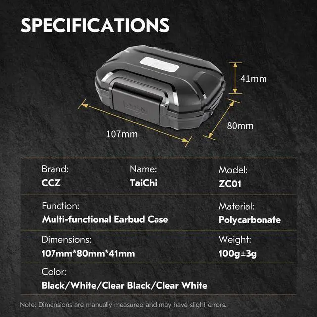 Waterproof and Dustproof, Defense for ElectronicsThe "Taichi" portable earphones case effectively protects against moisture and dust. Perfect for storing audiophile gadgets. The sealed TPU structure and reinforced lid provide full protection against rain, dust, or spills. Ideal for carry during hikes, gym sessions, or commutes.