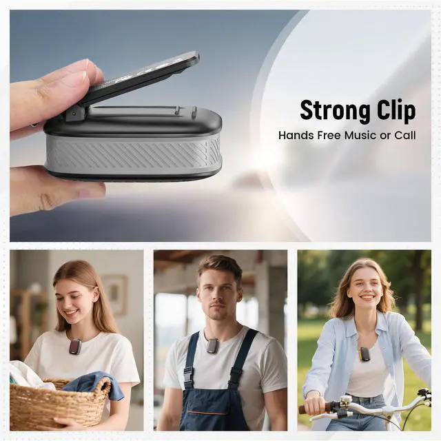 Portable Bluetooth Speaker & Strong ClipThis portable Bluetooth speaker features a pocket-sized design, allowing you to easily play music and answer calls. The speaker has a hands-free clip design, enabling you to attach it to your collar or backpack whether you're exercising or working, so you can enjoy music anytime, anywhere. The button design facilitates easy operation, allowing you to answer calls and switch music with just a press of a button.