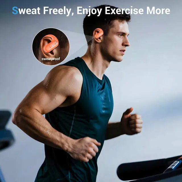 Sport Bluetooth 5.4 Headphones, Over Ear Buds with Deep Bass Sound, 60H Playtime Clear Calls Earphones Redesigned Comfort Fit with Earhooks for Running, Meeting, Workout - Orange