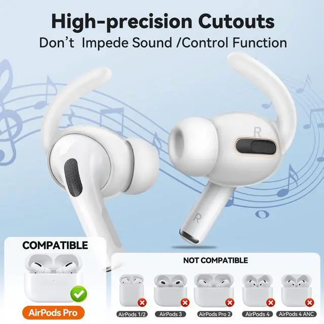 Snug Fit for Sport PeopleEngineered specifically for AirPods Pro 1st Generation, these sport ear tips deliver secure comfort during runs, cycling, dancing, and intense workouts. The non-slip ear tips contour and sound channel align precisely for AirPods Pro, ensuring zero interference with audio quality or functionality.