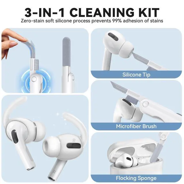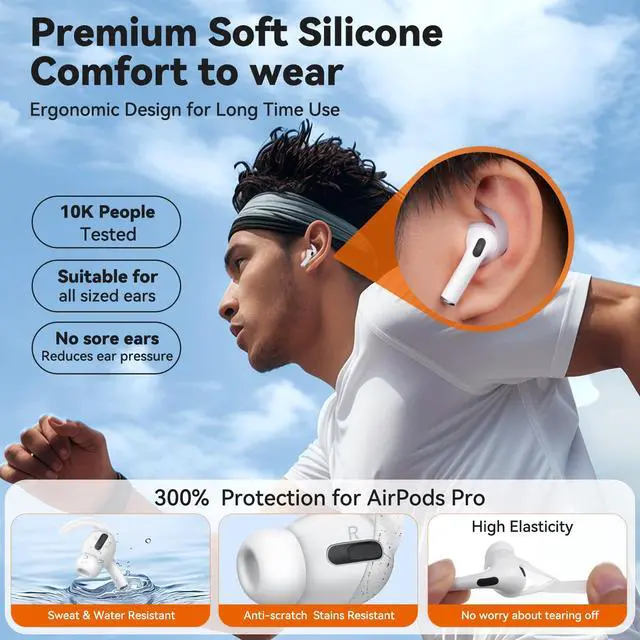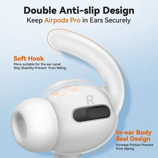 All-Day Comfort & ProtectionErgonomically crafted from highly elastic liquid silicone for pain-free wear. Tested across various ear shapes for lasting comfort. Shields for AirPods Pro from dust, scratches, and drops. Non-slip tips clean easily with water. No need to worry about tearing off while you take them on and off due to high elasticity.