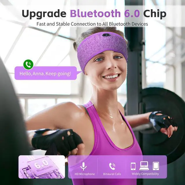 Headphones Bluetooth 6.0 Headband, 20Hr Headband Headphones with HD Stereo Speakers, Sports Wireless Earphones for Side Sleepers Workout Yoga Travel Meditation, Gifts for Women Men, Purple