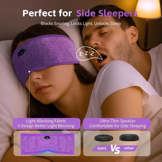 3-in-1 Sleep Headphones + Sport Bluetooth Headband + Sleep MaskCrafted with ultra-soft, breathable fabric and equipped with a built-in mic, this versatile headband headphones makes it perfect for both sleep and workouts. Enjoy hands-free tunes while keeping your sweat at bayperfect for naps, air travel, running, yoga, or sleeping. These sleep headphones Bluetooth are ideal for anyone sharing a bed with a snorer.