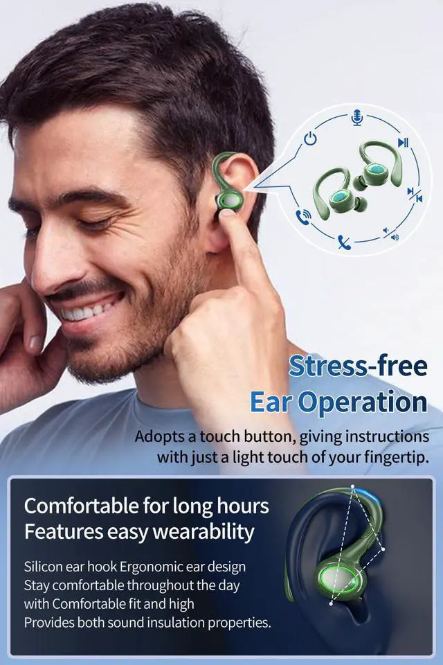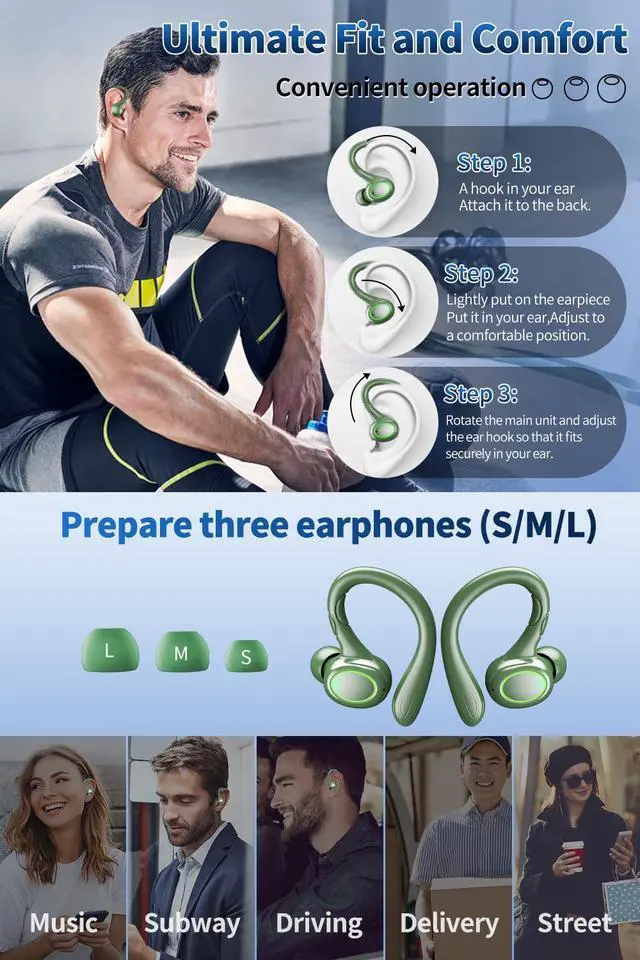 Comfortable Design & IPX6 Waterproof: These sport wireless earphones are ergonomically designed for a snug fit, providing fatigue-free and long-lasting comfort. The flexible earhooks securely fit your ears, ensuring they stay in place even during intense workouts. There are eartips in 3 sizes (S/M/L) available for the best fit. The IPX6 waterproof design protects the wireless headset from sweat and splashes, making them ideal for sports, gym, workouts, and hiking.