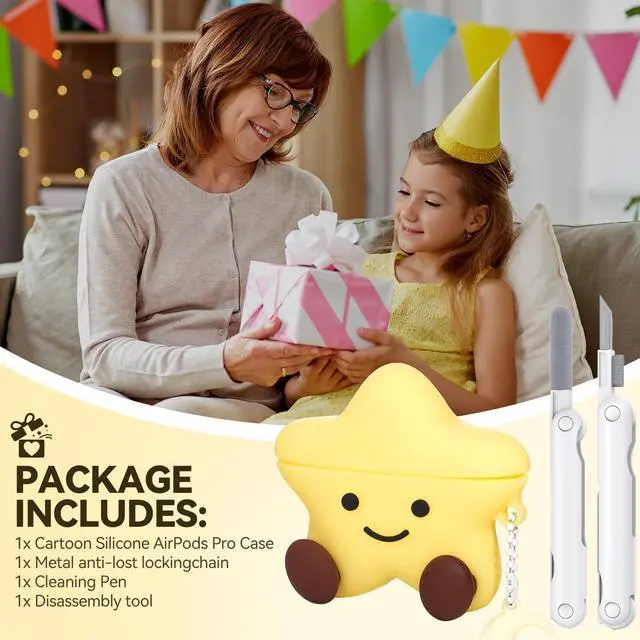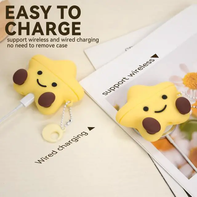Accessories Include: 1* Silicone Cute Star AirPods Pro 2 Generation Case, 1* Metal Keychain, 1* Cleaning Pen (AirPods Pro headphone and charging case are not included).