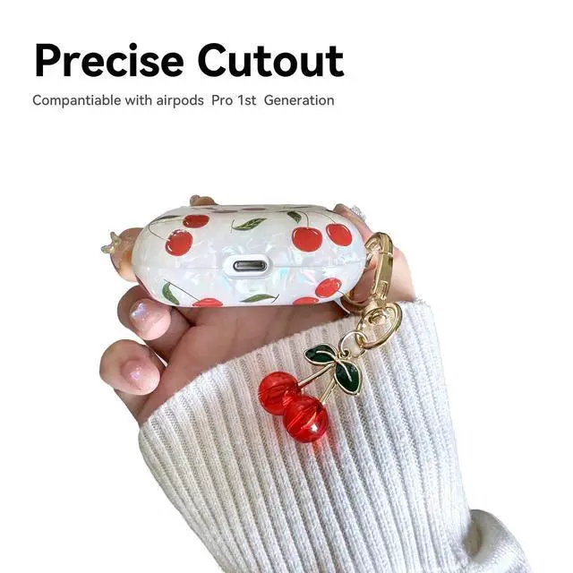Chic & Playful Design: Show off your personality with a hard TPU case featuring an adorable cherry print and a matching cherry keychain. A fun and stylish accessory for girls, teens, and womenperfect for attaching to keys, belts, backpacks, and more
