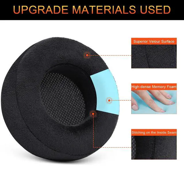 THICKENING FOAMThe high-density memory foam inside provides more space for your ears, making it comfortable for extended wear. With this earpads replacement, you can enjoy a wonderful gaming experience as if you were using your headphones for the first time.
