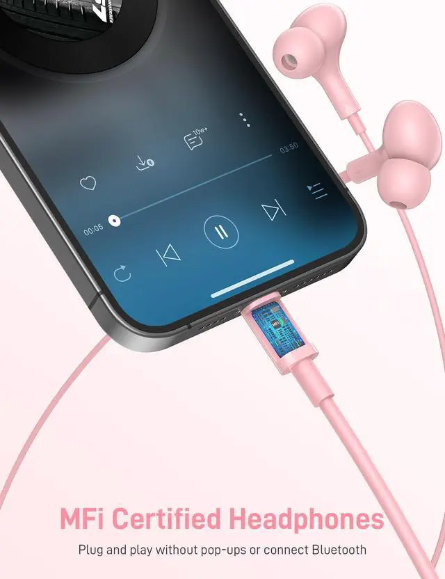 For MFi-Certified Headphones Wired for Stable Connection: Officially certified wired headphones for Lightning connector deliver zero audio lag for compatible iPhone and iPad models. No Bluetooth pairing neededideal for students commuting or making calls at home.