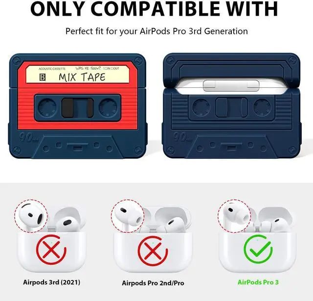 COMPATIBILITYThis cute funny cassette tape design case is compatible with AirPods Pro 3rd Generation (2025), perfect fit with your AirPods Pro 3, the backside cutout allows for a fully opening of the charging case.