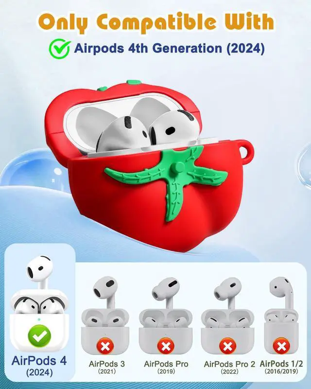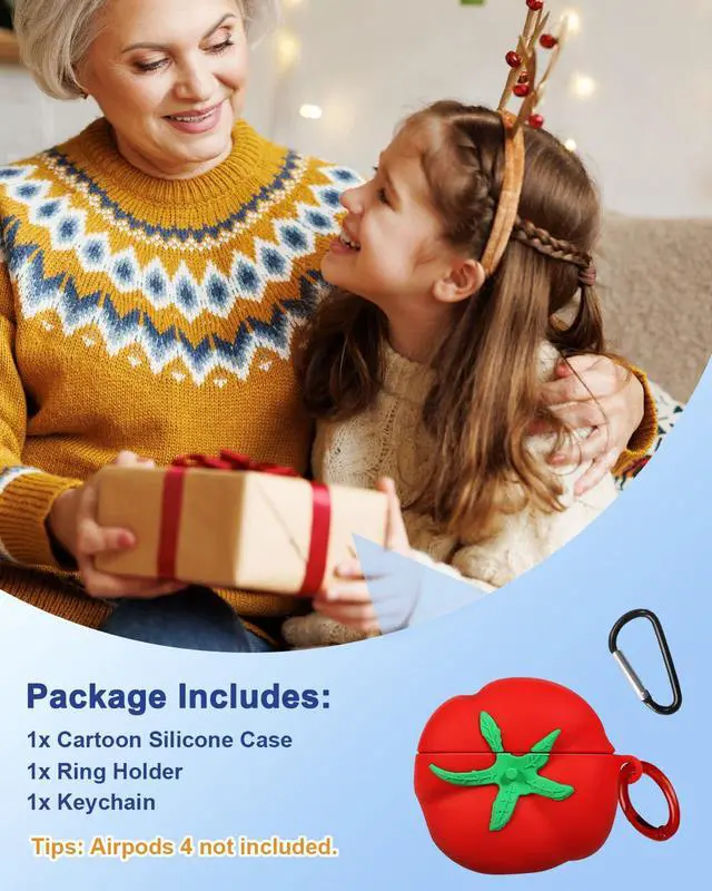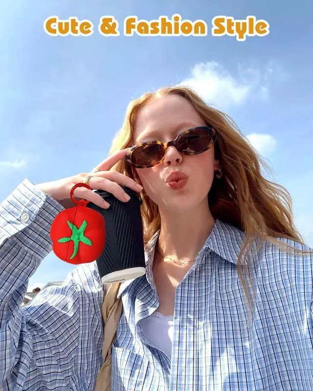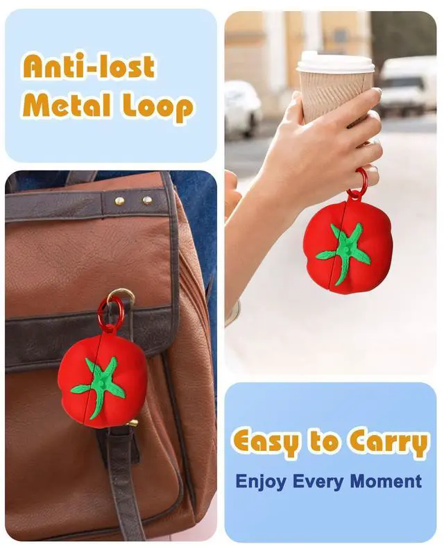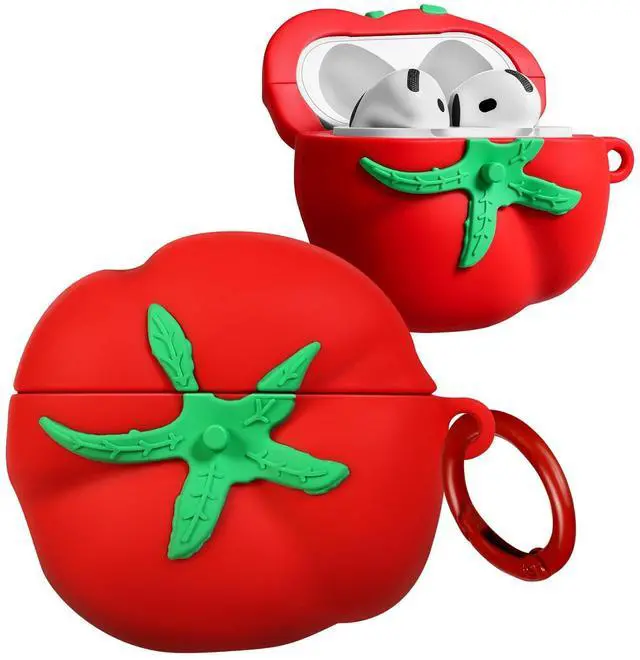 Adorable Design: The "Tomato" case features a lifelike tomato design with vibrant red and green details that make it look like a freshly picked vegetable. Made of soft silicone, it offers a smooth, non-slip texture that feels great in your hand. Crafted from safe and durable materials, it ensures your headphones are well-protected from dust, scratches, and drops.