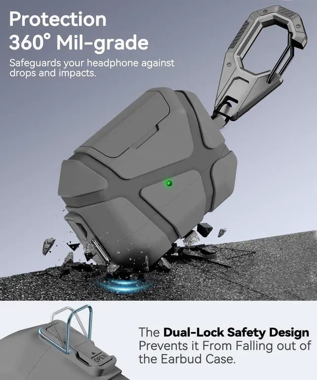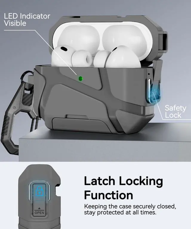 Safety Lock DesignThe protective case is designed with a safety lock, which is strong and durable even after long periods of use. The safety lock function prevents the AirPods from accidentally popping open when carrying or dropped.
