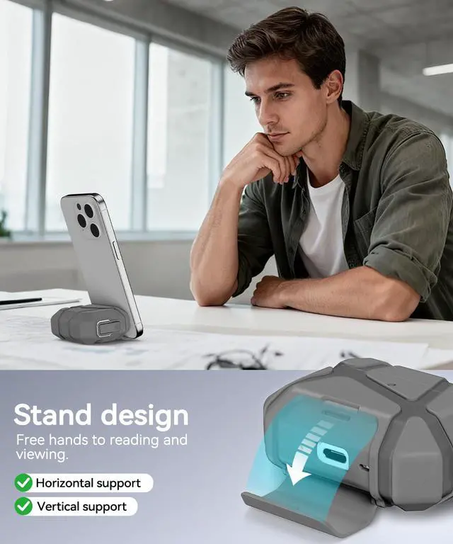 Upgraded Hidden Phone StandExperience hands-free convenience with our 90° Adjustable Stand! Allows you to watch videos or read without any hassle, freeing your hands anytime, anywhere! Holding your phone steady without flipping it over whether you put it horizontally or vertically. Totally reliable!
