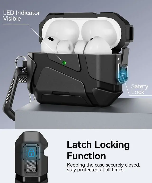 Safety Lock DesignThe case is designed with a safety lock, which is strong and durable even after long periods of use. The safety lock function prevents the case from accidentally popping open when carrying or dropped.