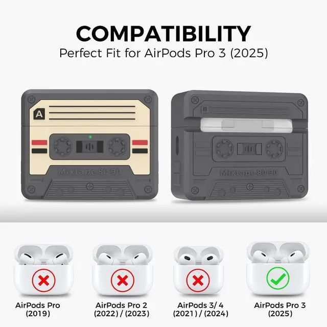 : Feel the authentic energy of music, reborn through the classic cassette tape. This AirPods Pro 3 case is a perfect fusion of retro culture and modern tech. Bring the tangible feel of that iconic mixtape into your hands and add a touch of analog warmth to your everyday life. It's a nostalgic accent for your modern life.