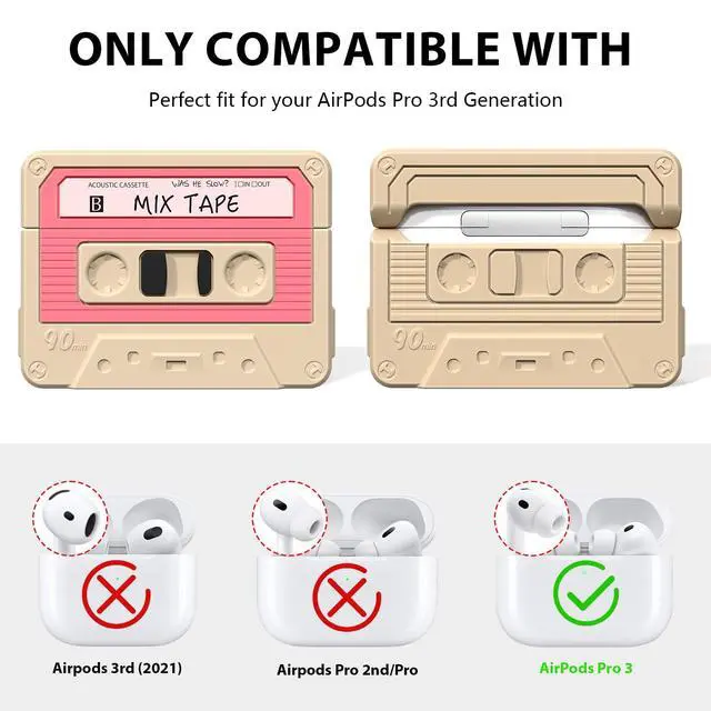 COMPATIBILITYThis cute funny cassette tape design case is compatible with AirPods Pro 3rd Generation (2025), providing a perfect fit with your AirPods Pro 3. The backside cutout allows for a full opening of the charging case.