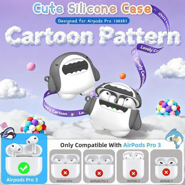 • Fun Cartoon StyleFeatures a unique & cute 3D cartoon design, adding a distinct style and personality to your AirPods Pro 3.