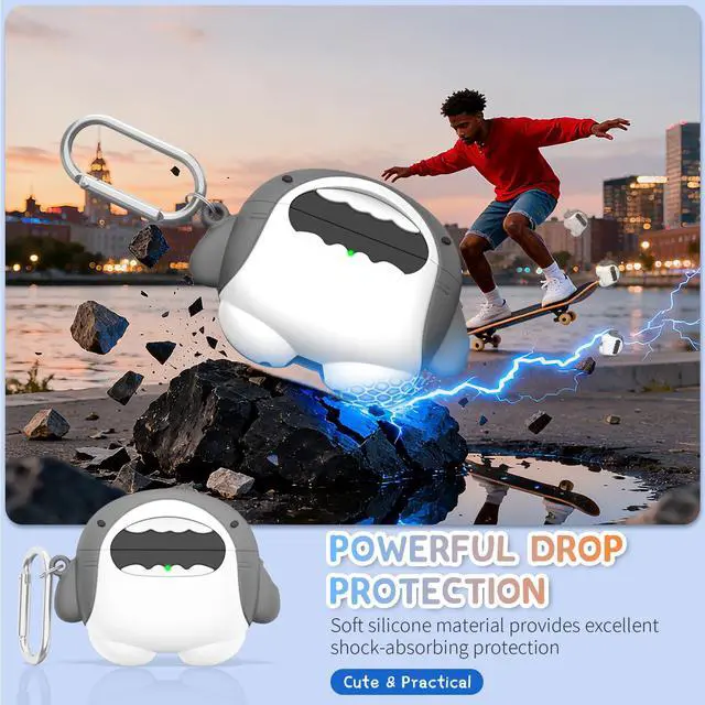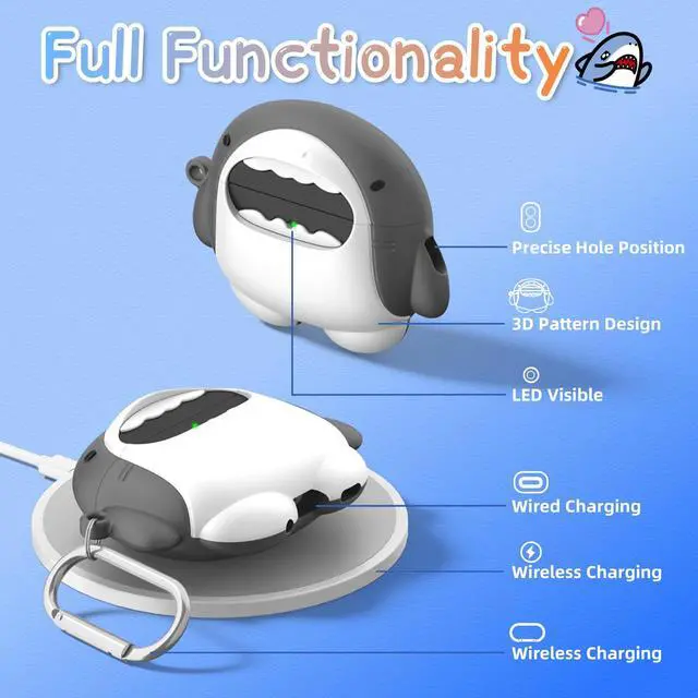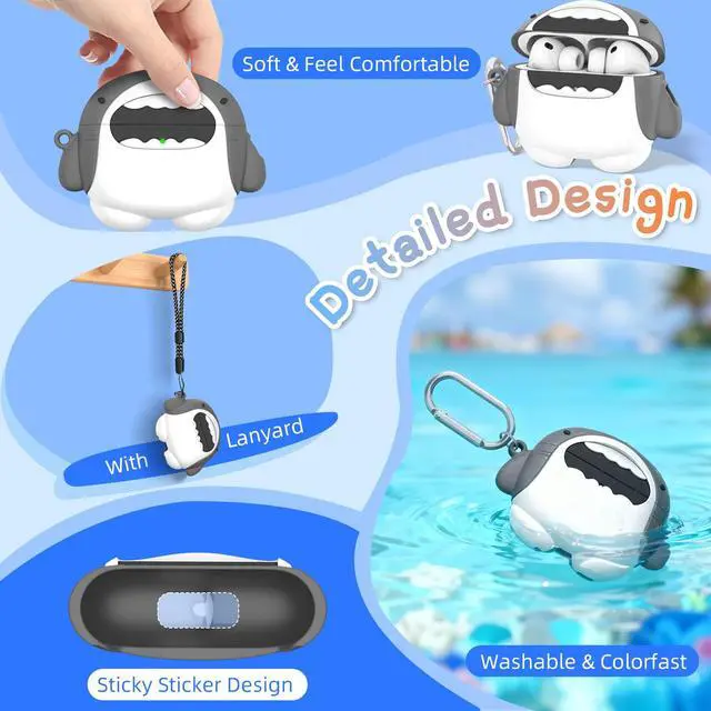 Funny Cover for Case Cute (2025), Soft Silicone Shockproof Protection 3D Cartoon Case for 3rd Generation Cute case with Carabiner & Cleaner Kit (Shark)